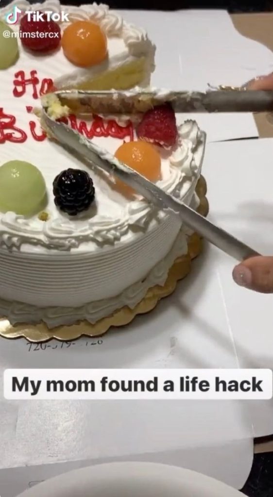 Den här mamman har hittat det perfekta sättet att dela tårtor. Det var i ett företag som hennes dotter var så imponerad av sin mammas förmåga att dela tårtor att hon bestämde sig för att filma den och lägga upp den på TikTok. Där har videon visats över 5,5 miljoner gånger.
